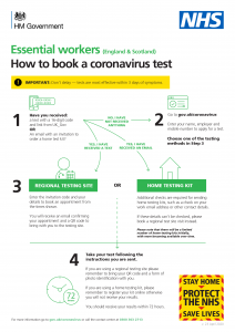 Essential workers in England and Scotland who are self-isolating can also now book their test online directly by visiting www.gov.uk/coronavirus and clicking on one of the options under “Testing for coronavirus (COVID-19).”