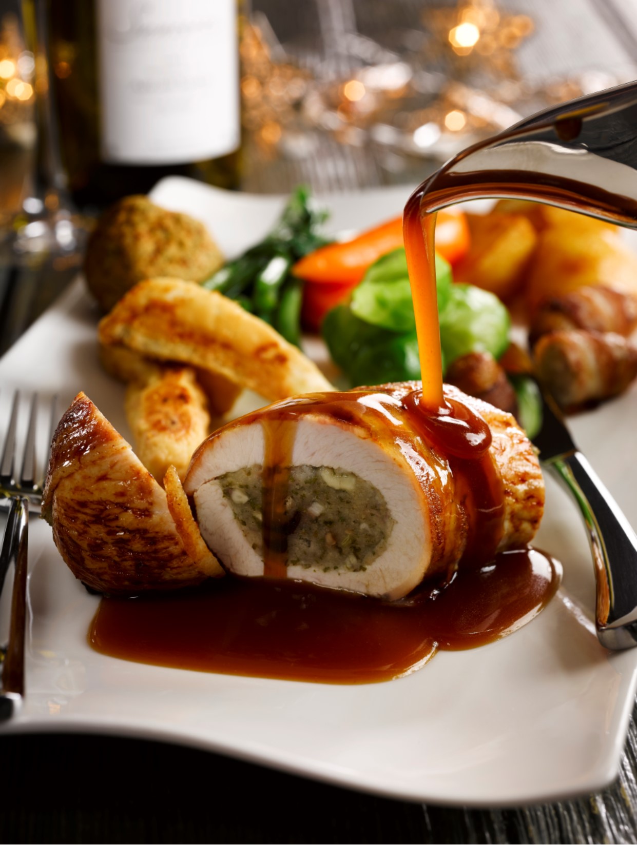 With quality meat high on the Christmas menu and with consumers keen to try different cuts, new this year is a versatile Mise en Place premium-branded Turkey Paupiette, prepared in Creed’s on-site butchery. Each Paupiette features farm assured turkey breast wrapped round a chestnut and cranberry stuffing and wrapped in bacon, giving the caterer an easy to serve turkey and trimmings. The Paupiette looks great sliced on the festive lunch plate, or cut on the diagonal for higher end presentation.