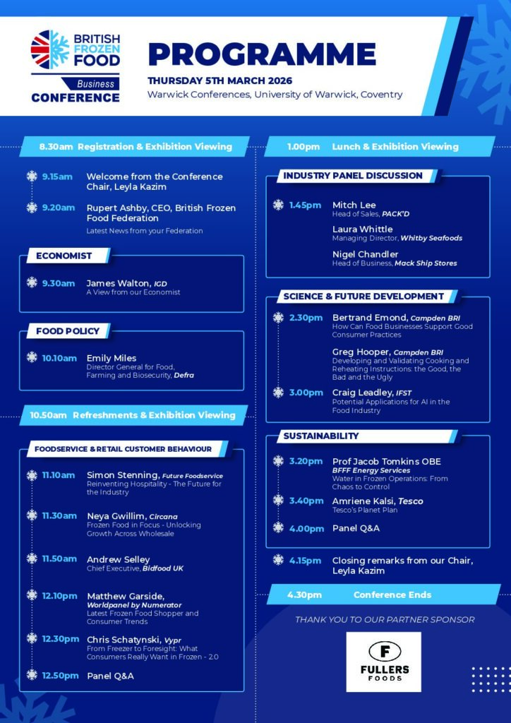 Once again we will be looking at and addressing the key topics from across the frozen food sector and taking a look at how both the retail and foodservice sectors are performing. We will also be looking at sustainability and external factors affecting our industry.