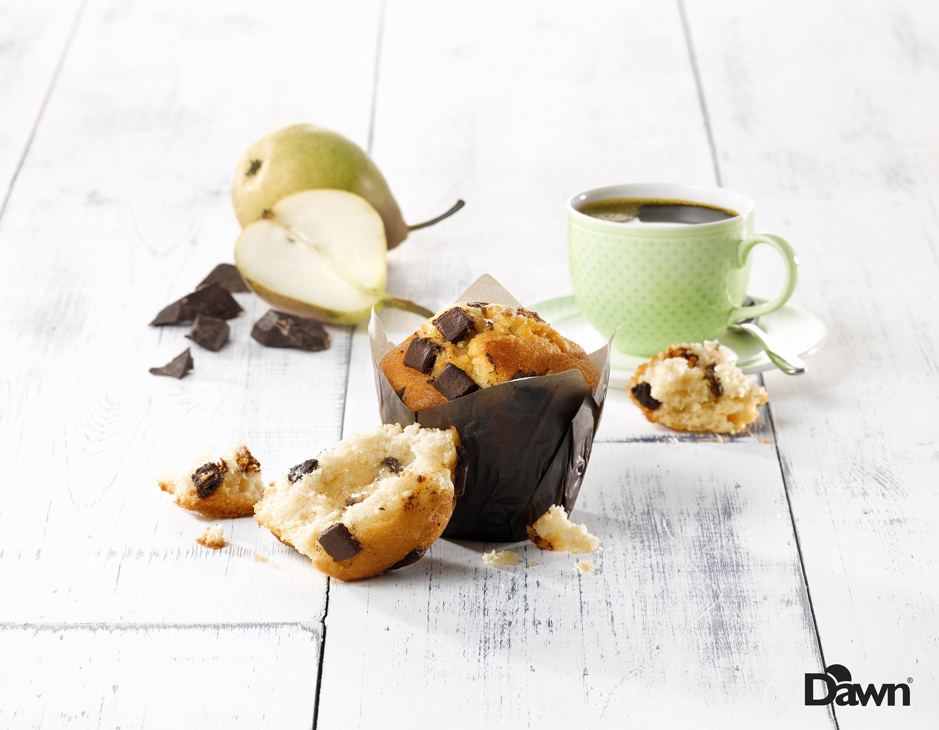 The premium tulip-shaped Williams Pear & Chocolate Muffin taps into consumer interest for heritage flavours and provenance ingredients by featuring origin fruit in pieces as well as a Williams pear jam filling. The combination of pear pieces, pear jam and plain chocolate chunks makes for an indulgent and moist eat as well as appealing to current trends for matching chocolate with fruit. Made using Dawn’s signature muffin mix, this product is made with free range egg, has natural flavours and does not contain palm oil.