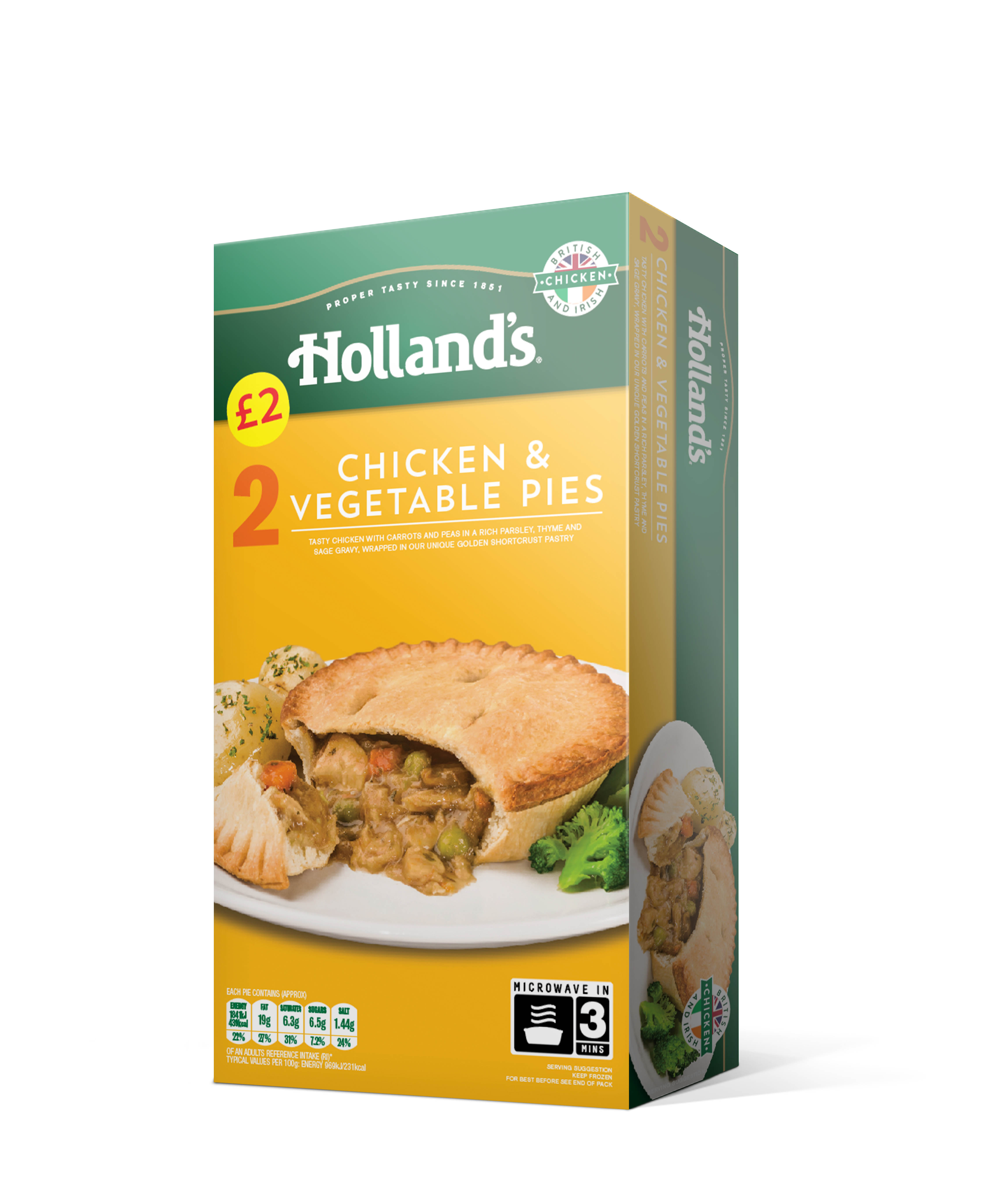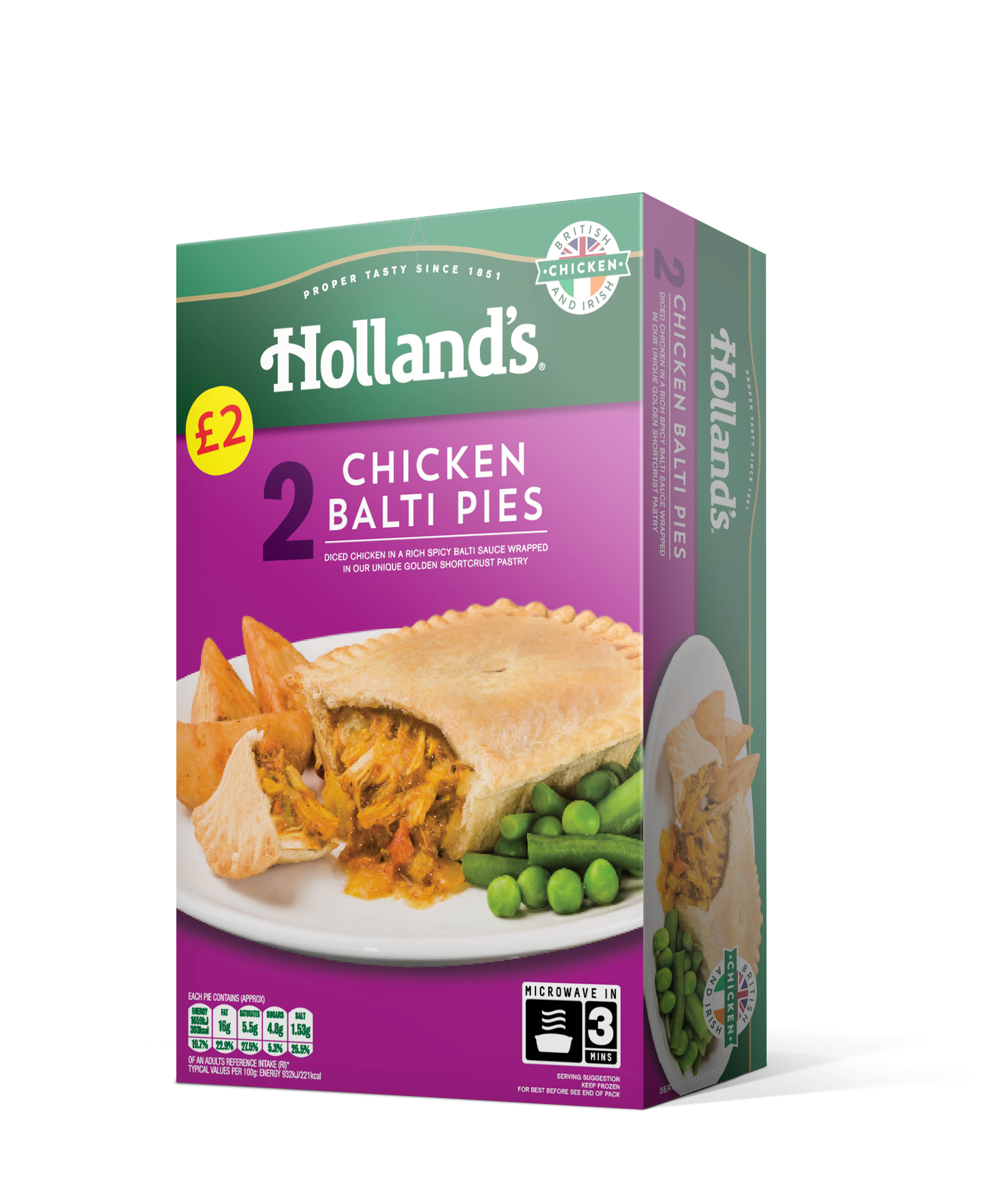 Holland’s, a proper Lancashire Baker since 1851, continues to develop its product range with a new variety of frozen pies, Chicken Balti, Chicken & Vegetable and Steak Pies, all prominently priced at £2, ideal for the convenience channel.