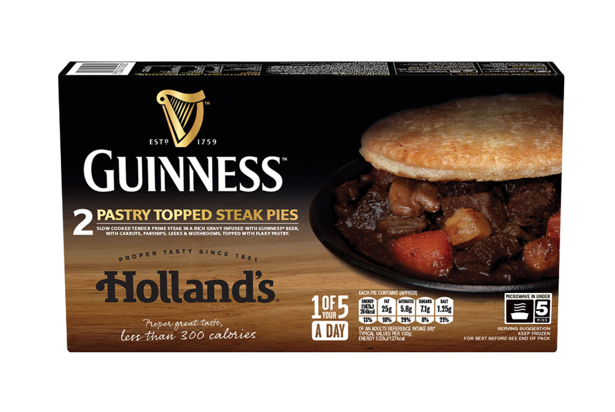 Just 8 months after launch the Holland’sSteak & GUINNESS®Pudding is already the 6th fastest-selling line in frozen individual pies in the UK, accounting for over 3% of total individual pie sales. ** The Steak & Pastry GUINNESS® Topped Pie is among the top-20 fastest selling individual pies in the UK. **