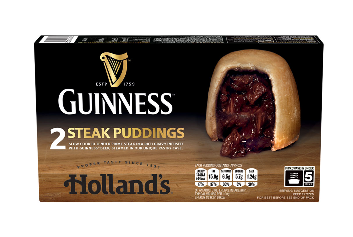 Thanks to the quality and demand of Holland’s Steak and GUINNESS®, the brand hasbecome No 1 brand in category*. The mouth-watering range features two-pack steak puddings and pastry topped steak pies, both ready to eat in minutes from frozen.