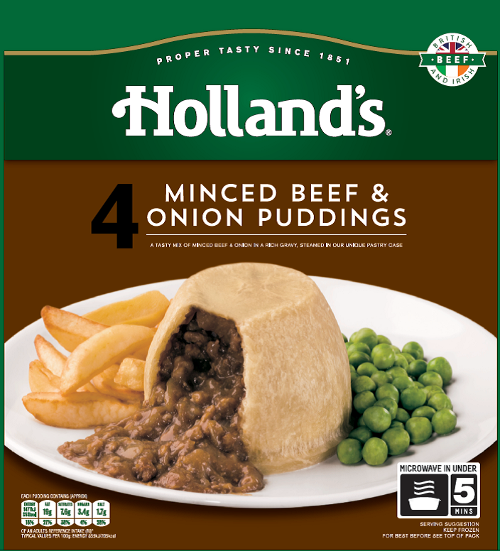 “Holland’s is the sole supplier of puddings into the frozen retail market, with Holland’s Steak & Kidney Puddings & Guinness® Steak Puddings featuring in the top selling lines in the category*.  The launch of our new Minced beef & Onion puddings will offer a new & different flavour profile within the savoury pudding category”.