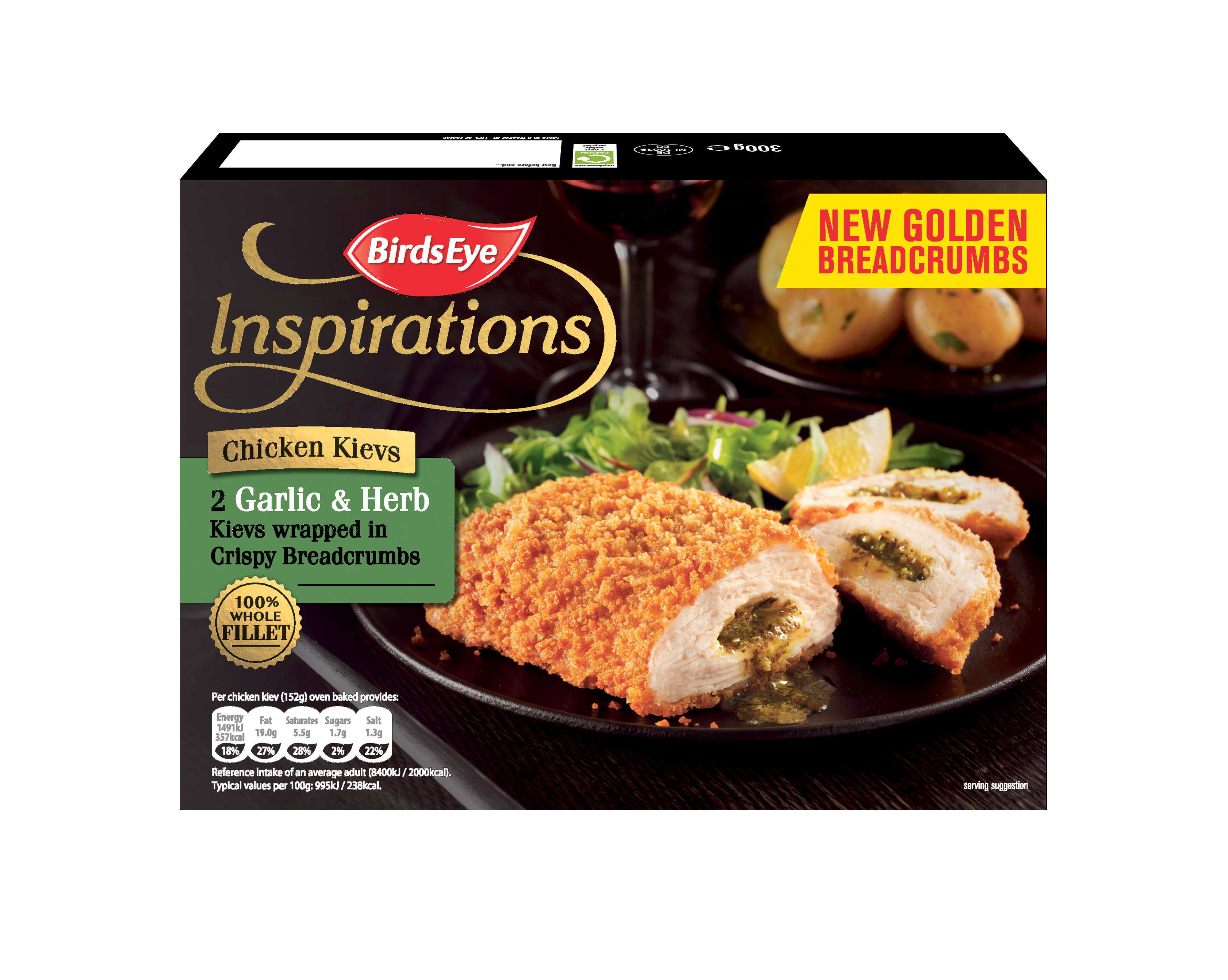 – Garlic & Herb Chicken Kiev Wrapped in Crispy Breadcrumbs