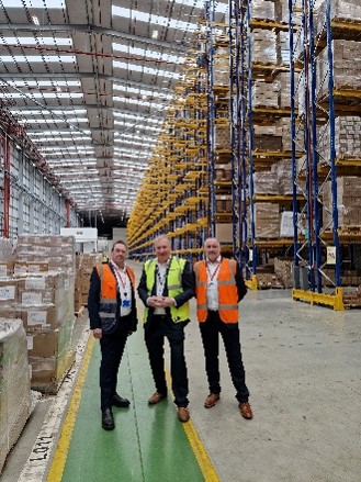 In terms of the use of innovation and technology, the latest robots and cobots are used to palletise, package, label and store products at a rapid pace. Pictured below right to left David Baker Head of Cold Chain, Simon Brentnall Head of Health & Safety BFFF and Will Fensom Commercial Director.